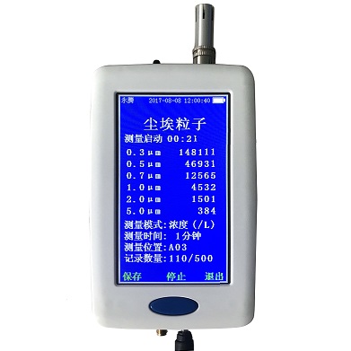測(cè)試粒徑:0.3μm、0.5μm、1.0μm、3.0μm、5.0μm、10.0μm